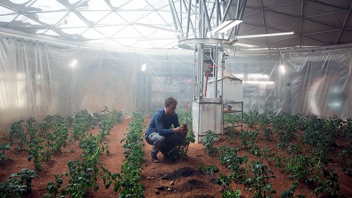 Mas a temperatura é apenas um dos vários desafios a serem enfrentados. No livro Perdido em Marte, do autor Andy Weir, o personagem Mark Watney é um botânico da NASA que foi dado como morto e, por isso, esquecido no planeta vermelho. Como ele não pode se comunicar com a Terra, sua meta é sobreviver 1425 dias até a vinda da próxima missão tripulada. Mas não há suprimentos, em especial a comida, para tanto tempo.